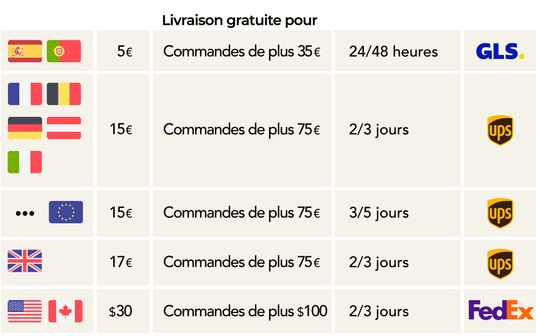 15€ Livraison France et Belgique | Livraison gratuite commandes +75€
