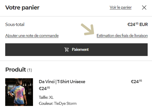 Lorsque tu regardes ton panier, tu trouveras un calculateur de frais de transport qui te permettra de vérifier les prix.
